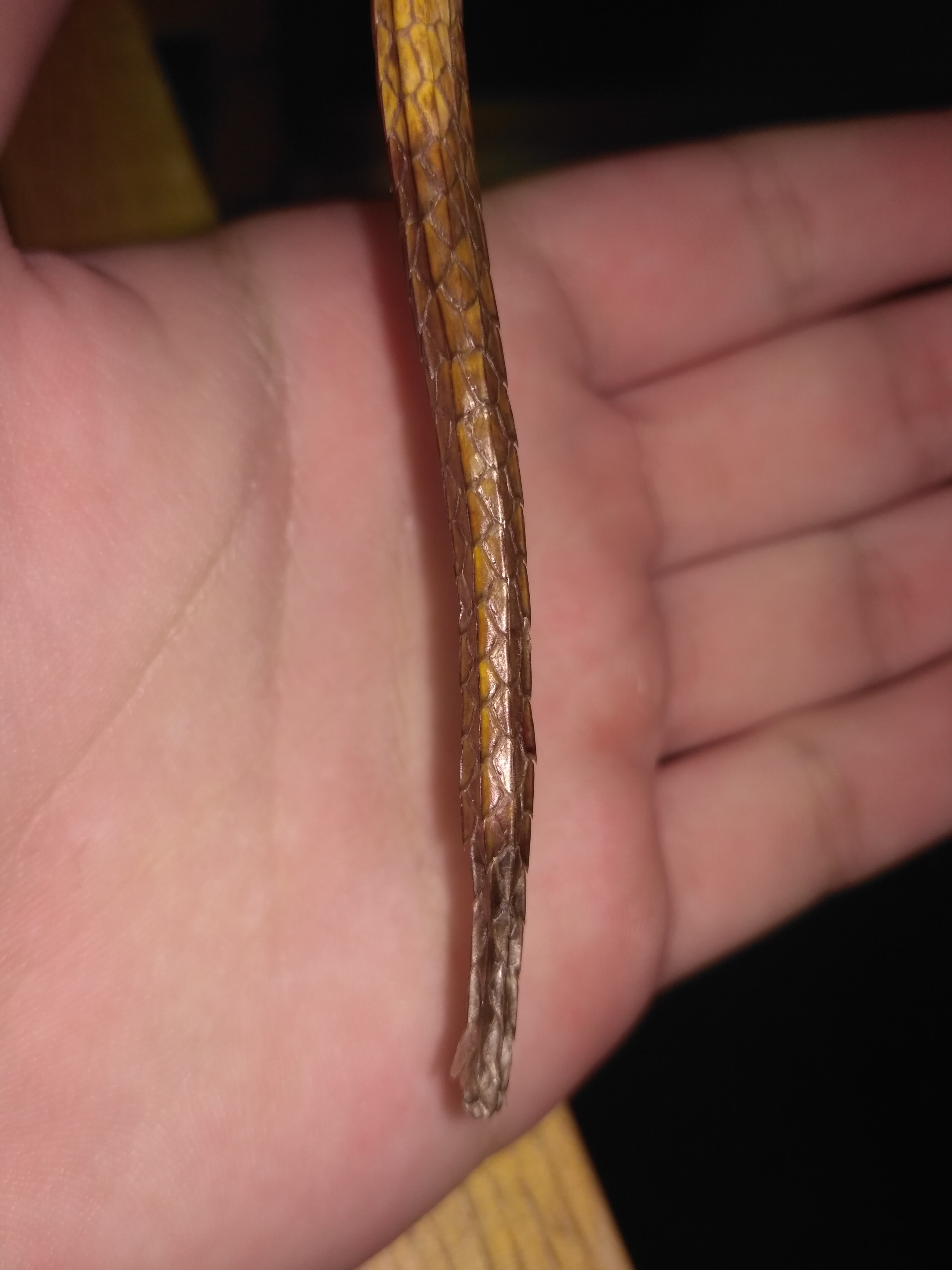 Včera jsem se legovi díval na tu mrtvou část a všiml jsem si, že tahle mrtvá část začiná odpadat a pod ní je ocas zacelený, ale nechtěl jsem mu to odlupovat, tak jsem to jen lehce zkusil a každej den mu to namáčím v tom betadin roztoku.