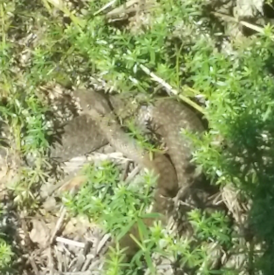 Fotka je vážně mizerná, ale kresba v zadní části hlavy a na krku jasně ukazuje, že se jedná o užovku hladkou (Coronella austriaca).