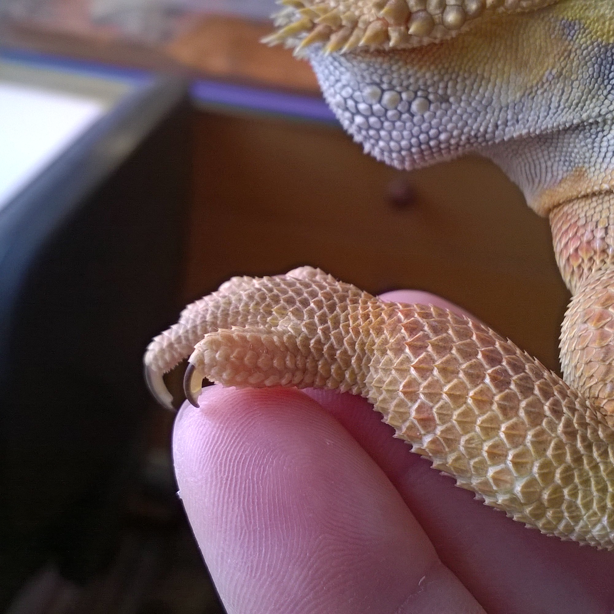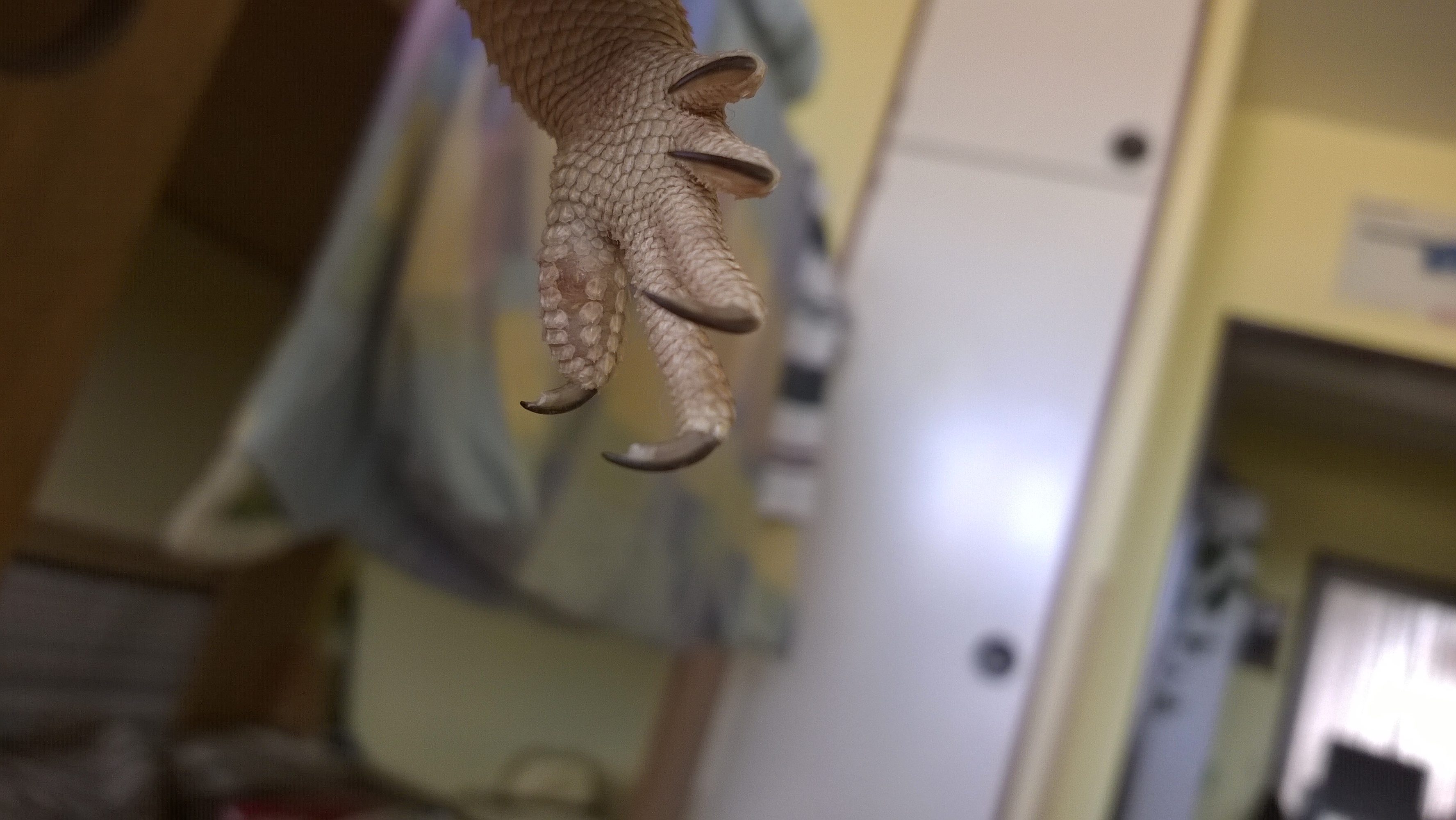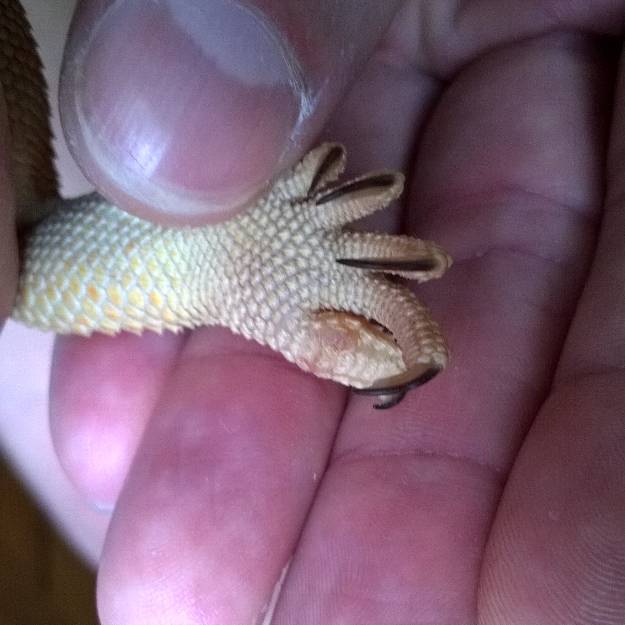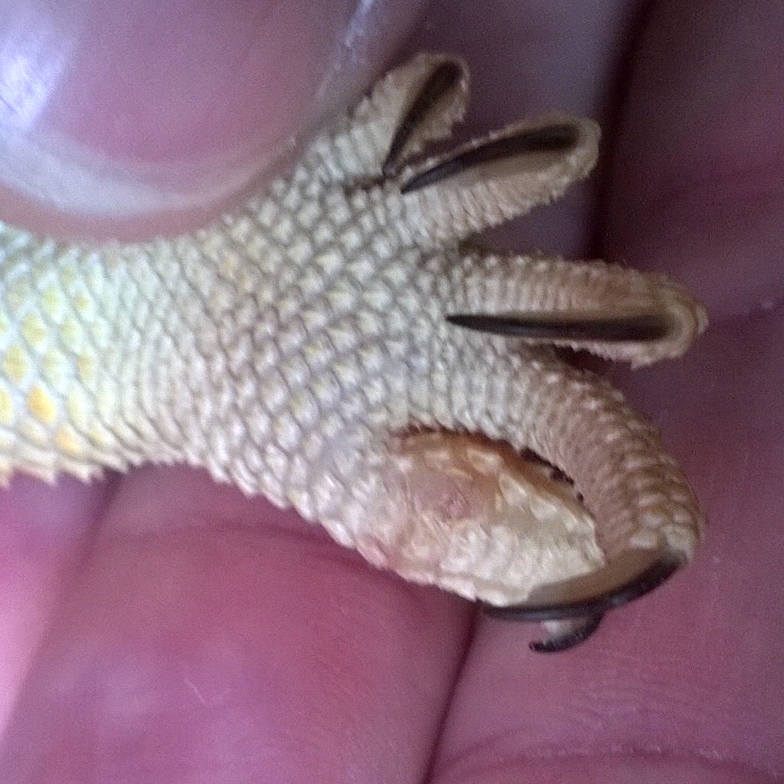 Dobrý den, vím , že je to těžké určit jenom z fotky, ale aspoň rámcově o co by se mohlo jednat ? Případně zda mám navštívit veterináře ? JInak agama nekulhá a normálně leze.