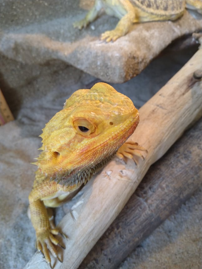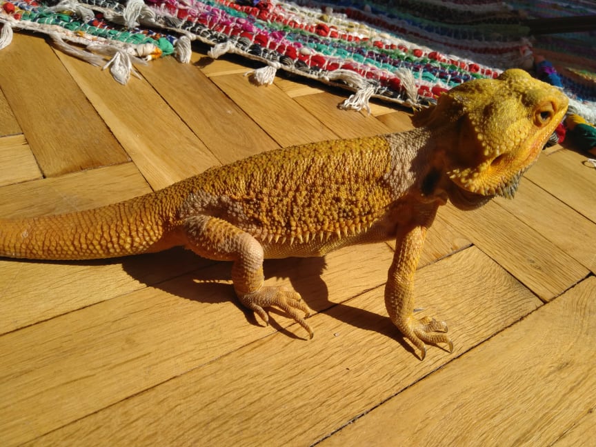 Zdravim,takže samečkovi jsou tři roky,koupil jsem ho jako tříměsíční mládě,z počátku jsem ho měl zhruba měsíc v teráriu které bylo příliš velké...nevim jestli tam měl dostatečně vychytané ty vzdálenosti světla atd ted jsou v teráriu 120X60X60....ze začátku jedl celkem normálně, pak přestal jíst a místo aby nabíral tak hubnul,když se občas vykadil, měl krvavou stolici atd. Udělali jsme mu testy a měl nějaké parazity...byli jsme s ním u veterináře ten mu dal injekci a pak jsme mu dávali prášky na odčervení.To už budou tak cca 2 roky.Pak problémy ustali jinak je aktivní,papá...přijde mi naprosto zdravý, akorát ten třes mě znepokojuje a přijde mi že se to zhoršuje. Ze začátku se mu klepala hlava nepatrně na první pohled by se toho člověk ani nevšimnul,ale ted je to už dost.Ale nemá to nějak vliv na jeho chování navíc se chce pořád pářit a doráží na samičku.
