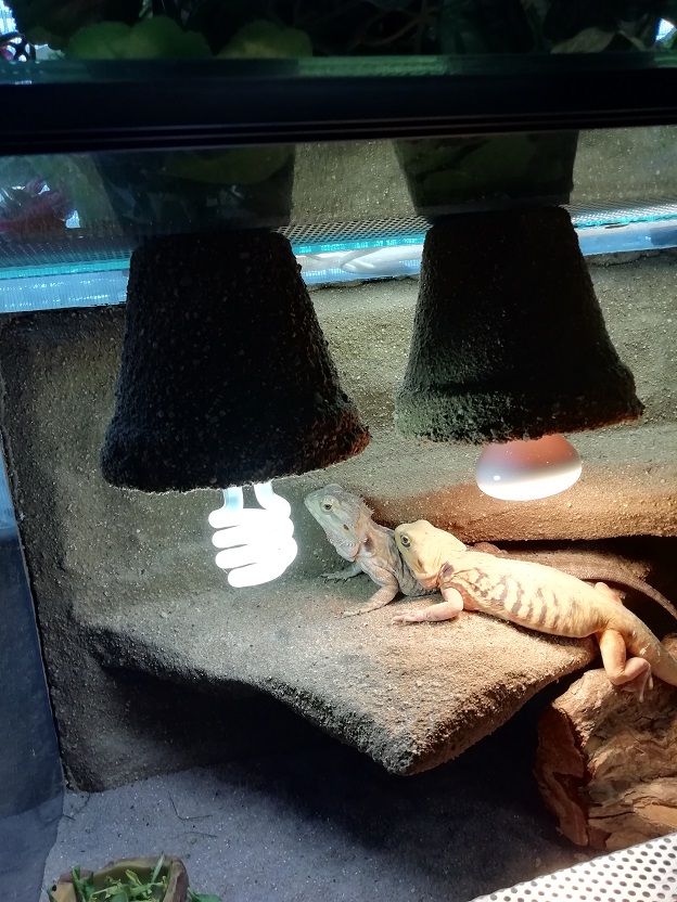 Tera nejspis OK, u toho druheho teda nevidim zdroj UV-B. V podstate hlavne pohlidat spravnou teplotu, dostatecne intenzivni osvetleni, a rozumny zdroj UV v spravne vzdalenosti od zvirat.