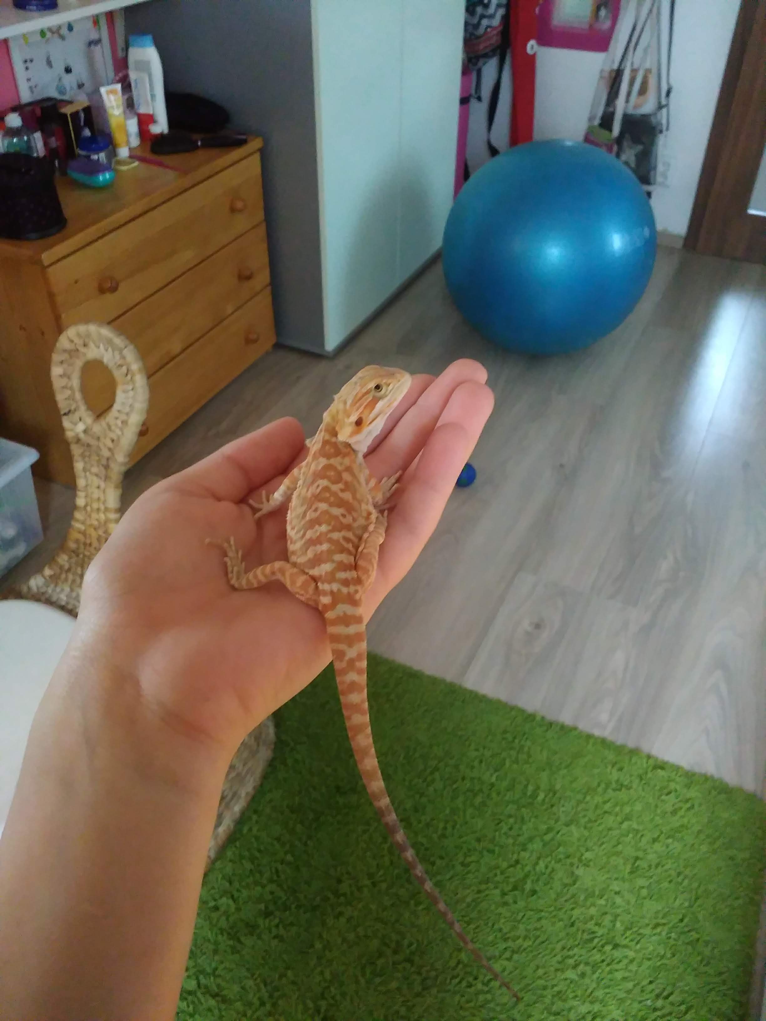 Mám 5 měsíční agamu vousatou mám ji už 3 měsíce (do teď bylo vše v pořádku) a do teď bylo vše ok, ale asi od minulého týdne přestává být tak aktivní (ráno vyleze z úkrytu nají se zeleniny a za leze zpátky) když ji chci nakrmit cvrčky nechce. Ale když ji vyndám z terárka tak pp pokoji běhá úplně v pořádku. Každý měsíc ji měřím a vážím, ale roste strašně pomalu (např: teď by měla mít 30cm a má 24cm jako 4 měsíční mládě) Podmínky v terárku by měli být v pořádku.