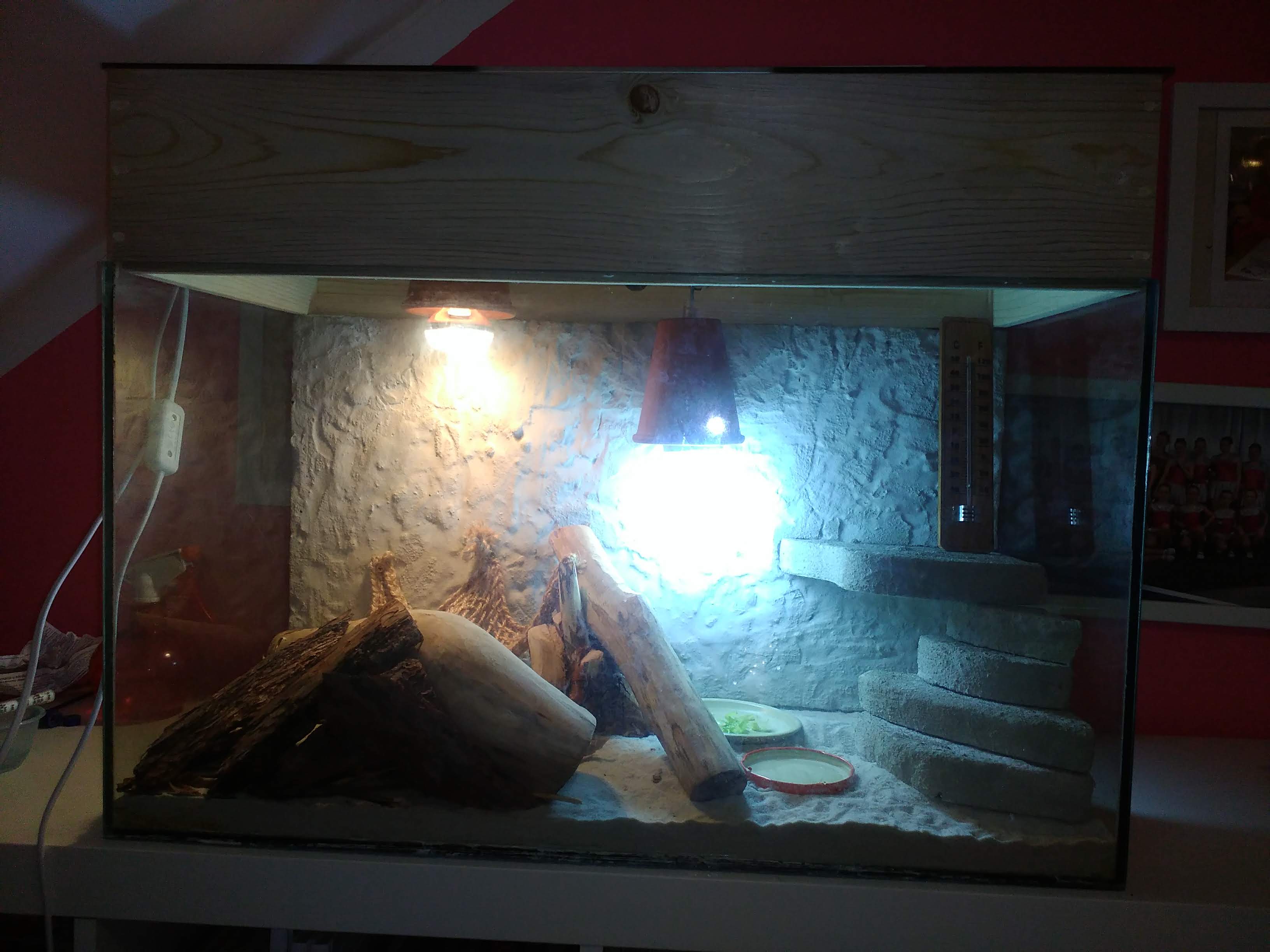 Osvětlení: uvb : repti uvb 15.0 extra strong (26w) tepelná: repti basking spot lamp (40w)