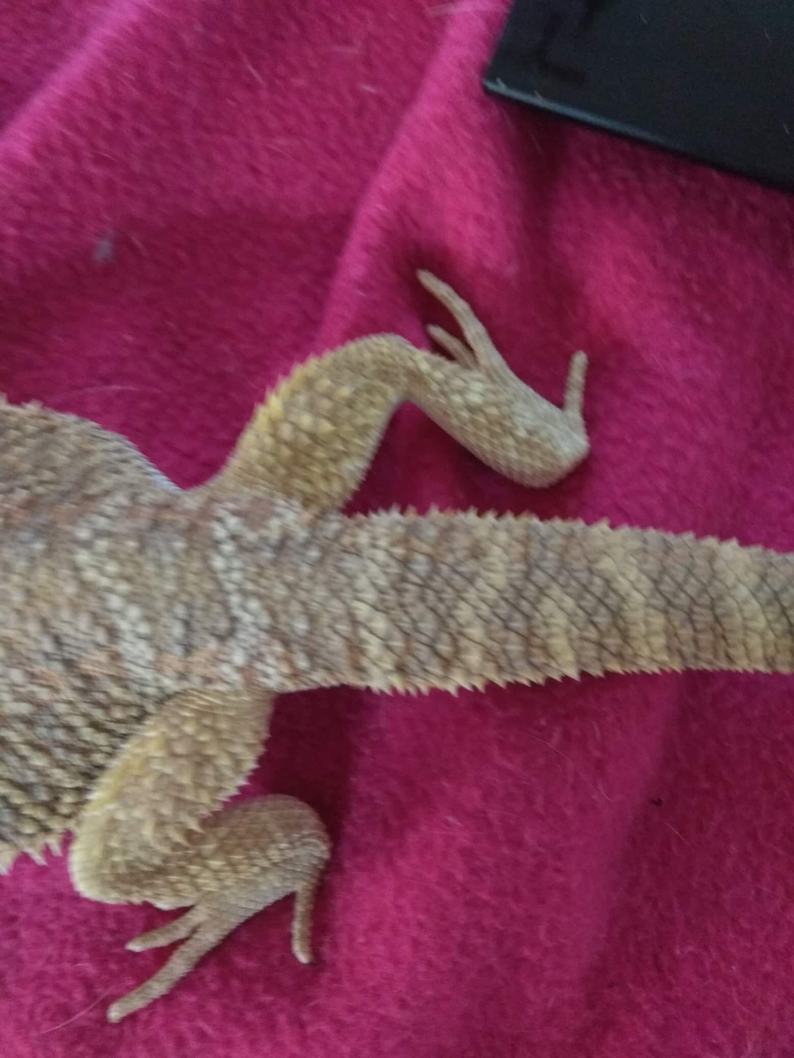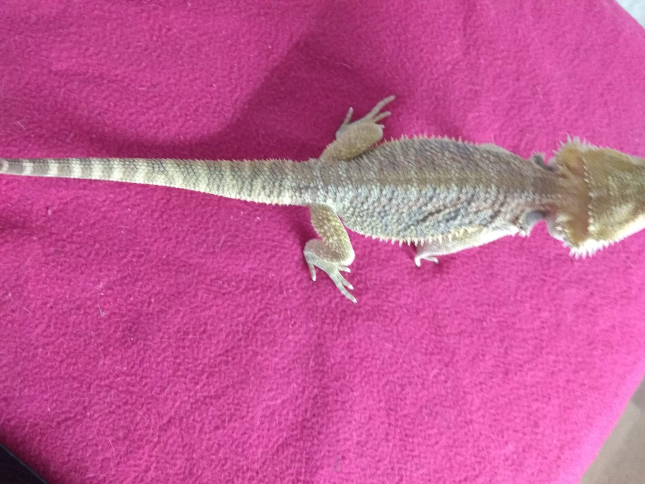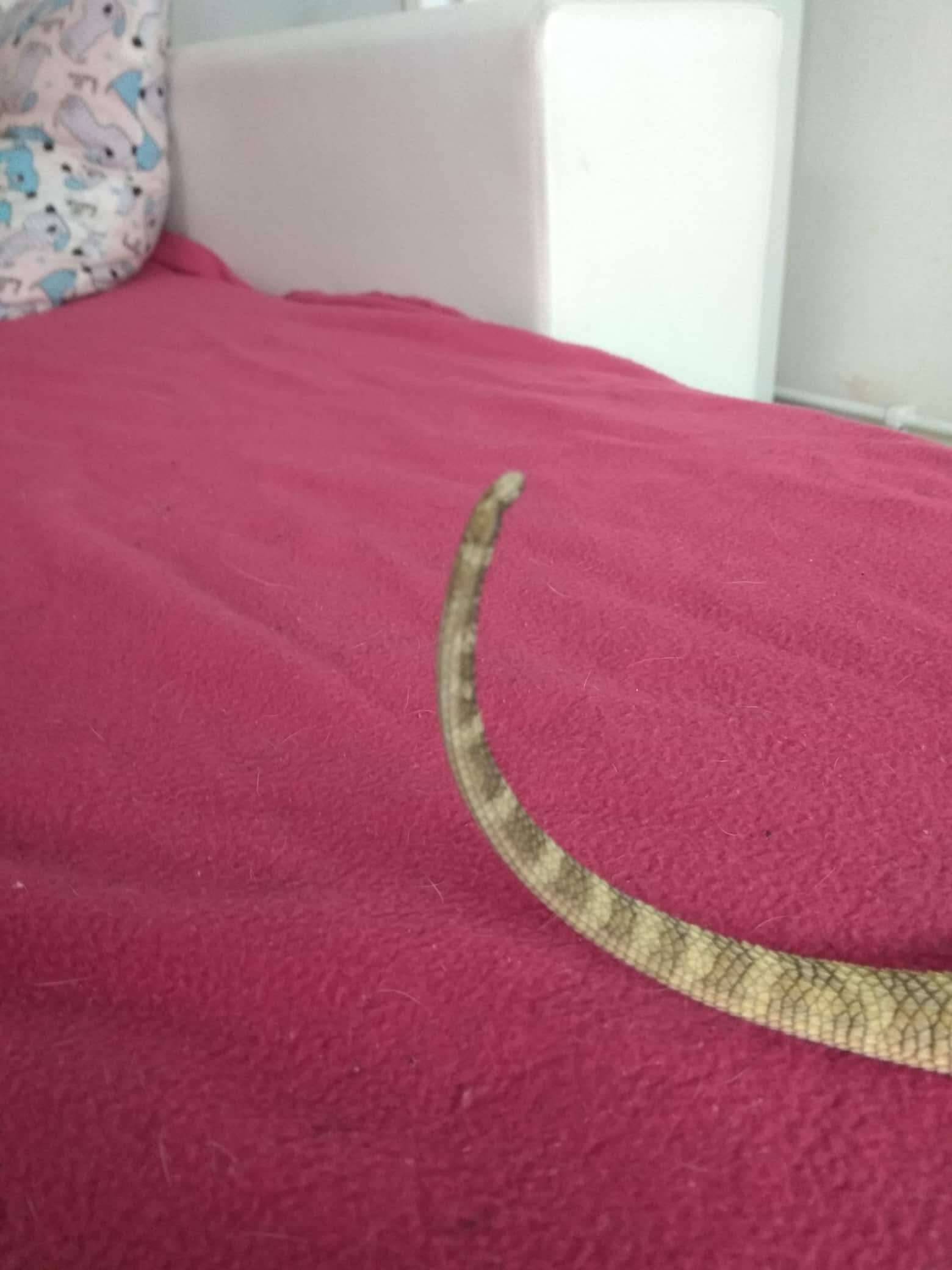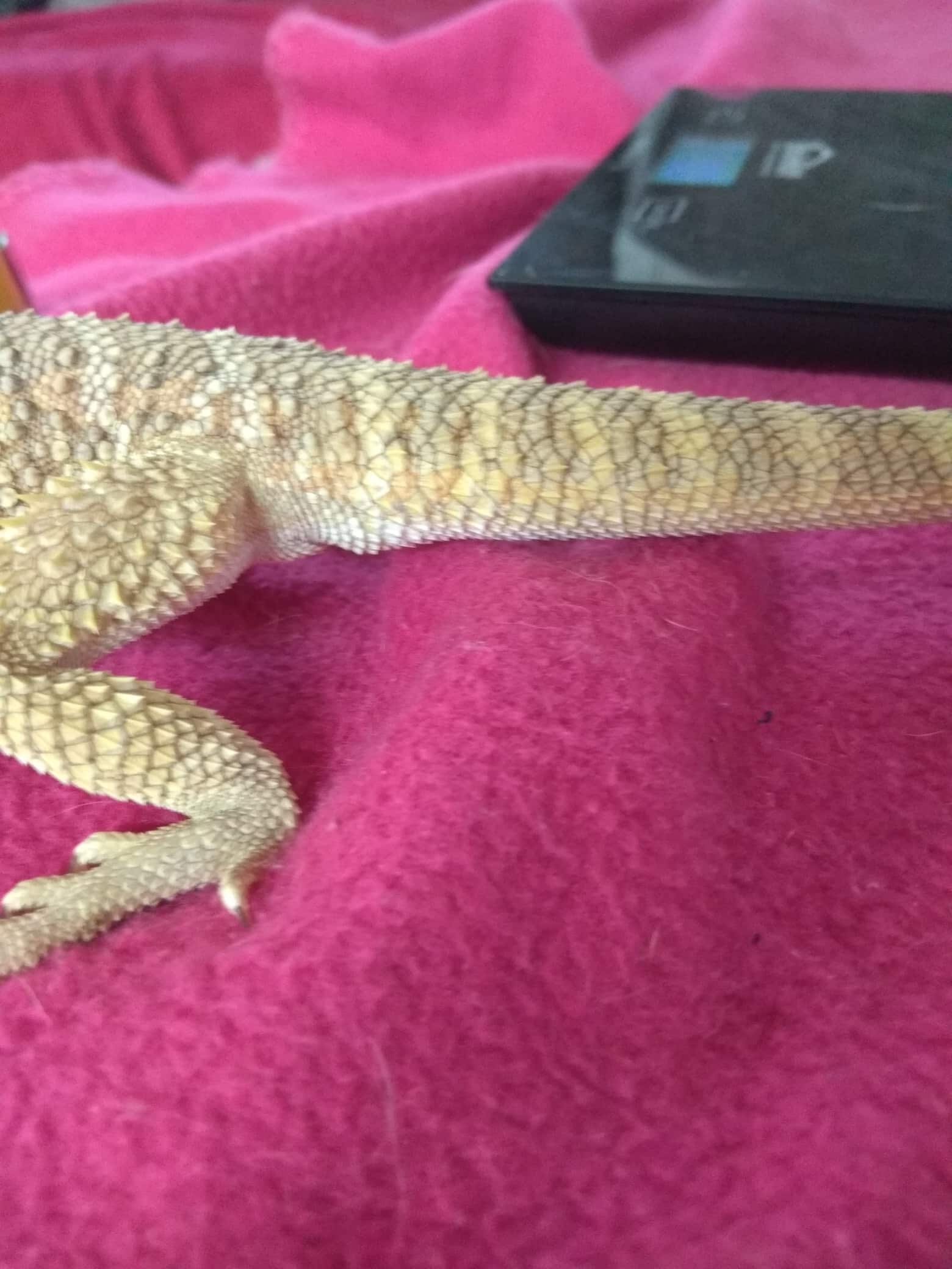 Potom mě taky veterinářka strašila s křivicí(jenomže jsem se dozvěděla,že slečna není na plazi ani orientovaná),protože když jsem si ho přivezla měl na ocasku křivou část (viz foto) jenže si myslím že to má ze špatného svleku, vše ostatní totiž ok, vitamíny taky dostává, klasika plastin a roboran na cvrčky a kalcium dostane když si vezme zelené.