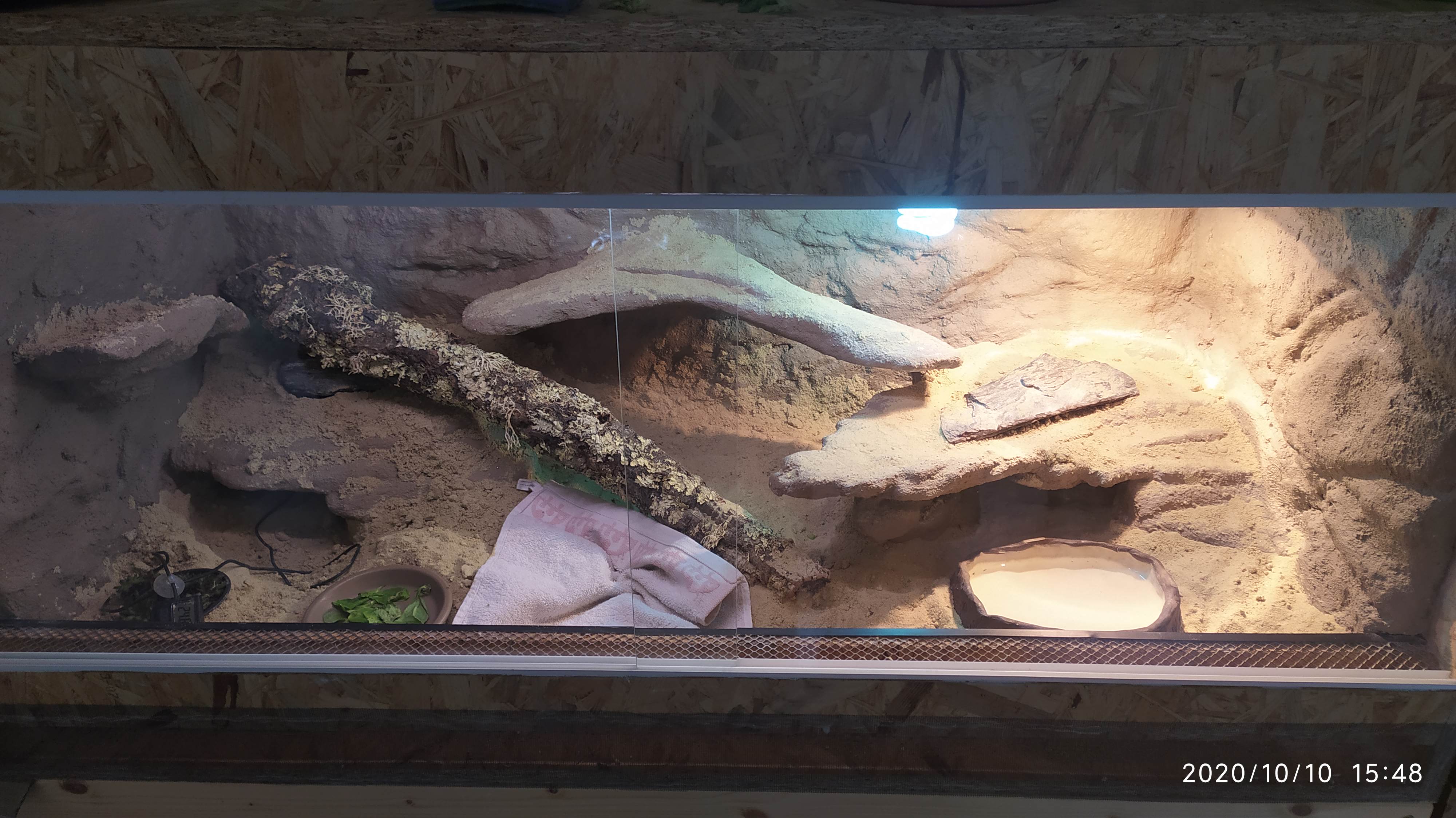 Terárium má rozměry 120x60x60, substrát je písek do pískoviště.
