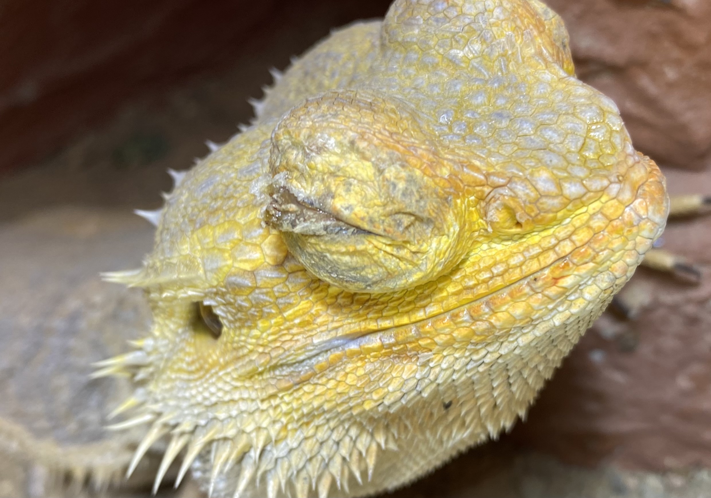 Naší osmileté agamě se objevil u oka jakoby strup nebo jak to popsat. Myslím, že už jsem to viděl kdysi a časem se to srovnalo. Jen si teď nejsem jistý, kor jak je starší.