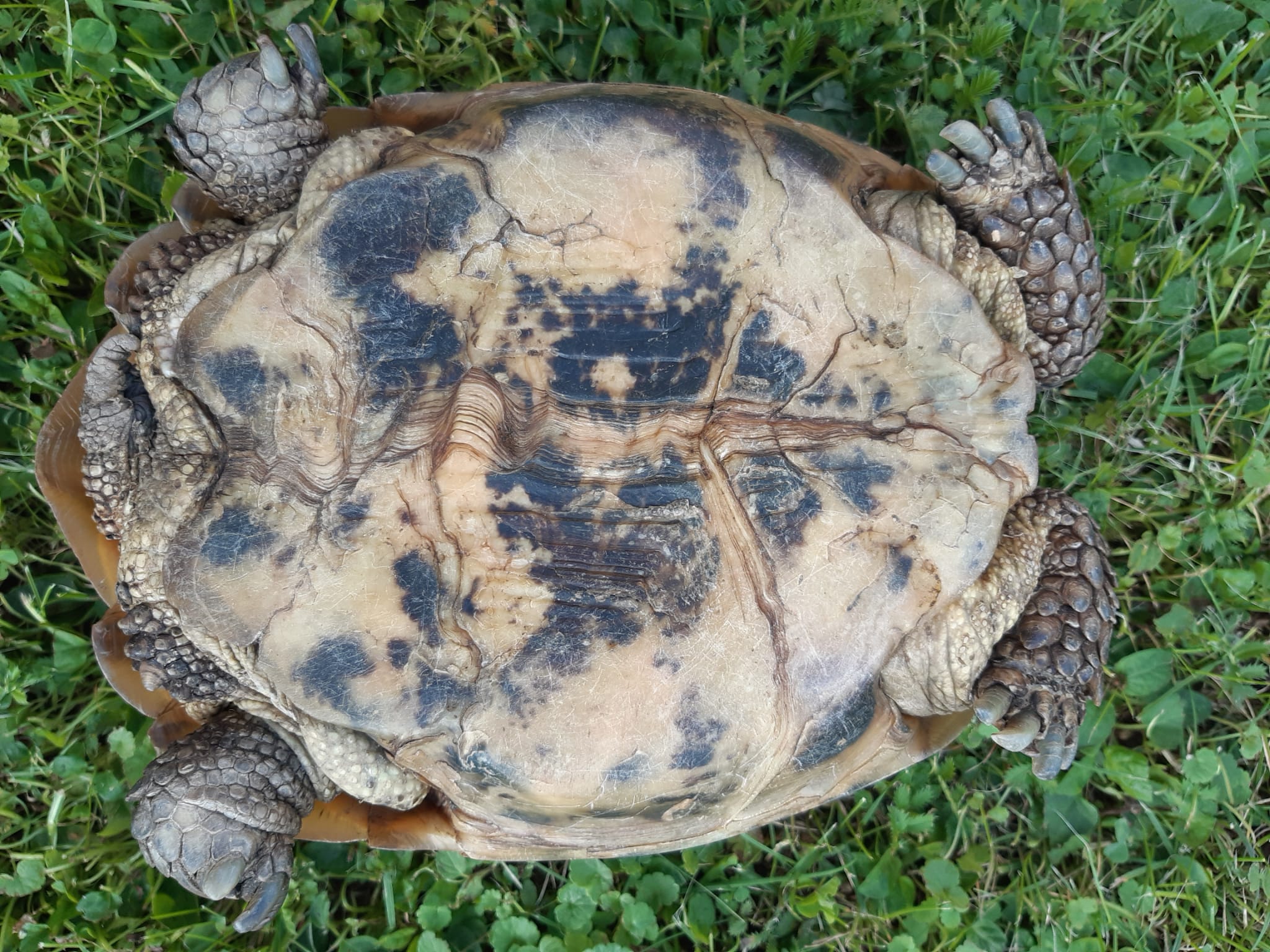 Zdravím, zajímavé zvíře. Fotka z vrchu by se taky hodila pro lepší odhad druhu a věku. Jinak si tipnu, že to bude starší zvíře druhu želva stepní (T. horsfieldii). A pokud je, sedělo by mi to spíš na samičku. Ale už je to pár let, jsem měl Testuda v ruce:D