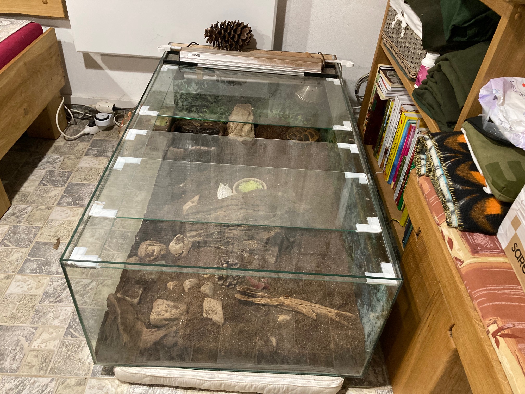 Prodam sklenene terarium - vhodne napr. pro suchozemske zelvy 120x70x40, jako nove