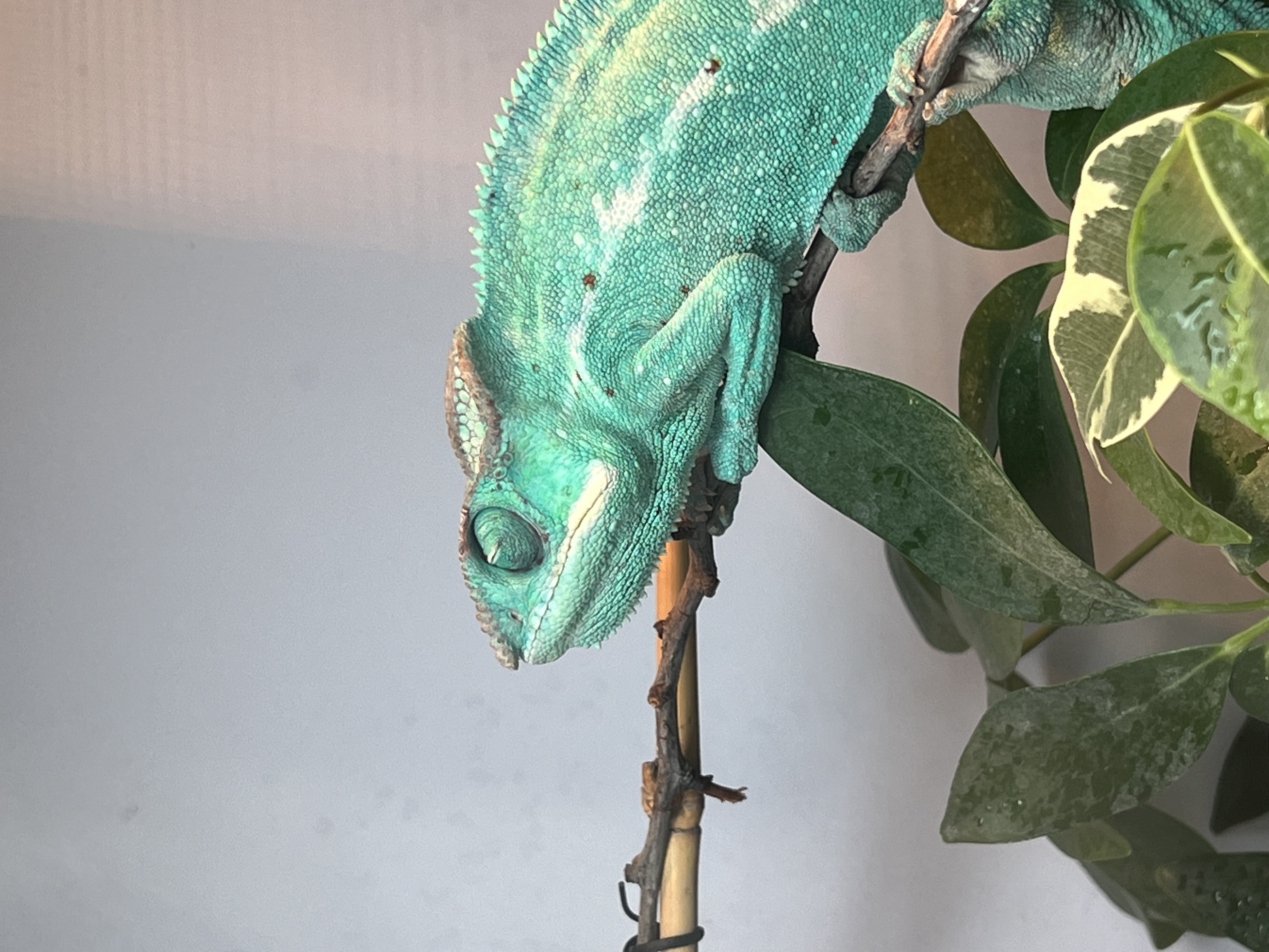 Mám chameleona, fungoval bez problémů ale už 3 týdny má zavřené oči. Problém je že přestal lovit cvrčky.