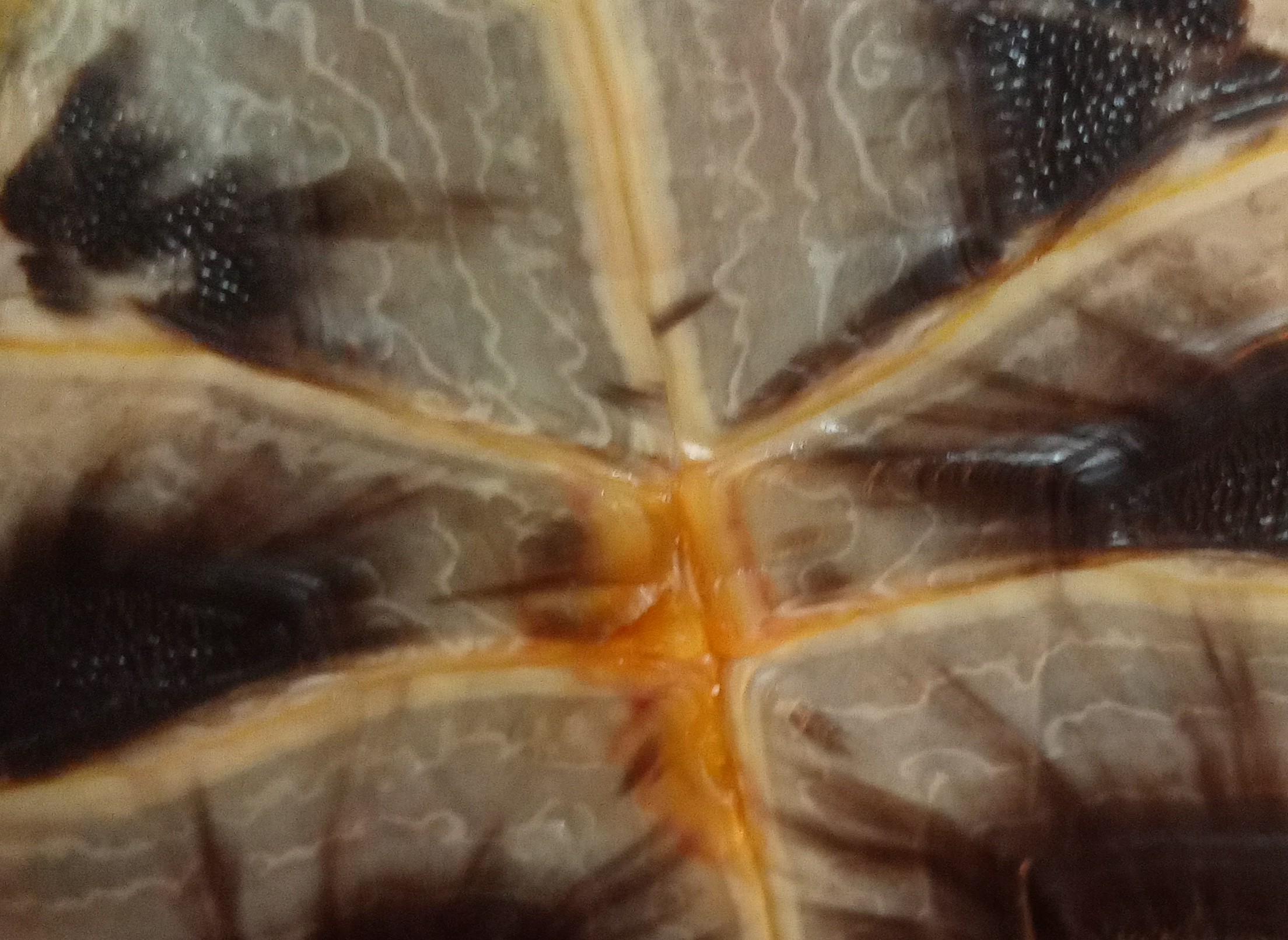 prosím o radu, zda se nejedná o nějaké plísňové onemocnění nebo hnilobu krunýře. Máme 8 měsíční želvu - chovné podmínky - výhřevná žárovka s Iva zářením, UVB žárovka, 2x sypaná potrava vápníkem, sépiová kost v teráriu k dispozici. Krmíme pouze zeleným ( pekingské zelí, pak Choi, polníček, nyní pampeliška). Vlhký kout v teráriu na spaní.